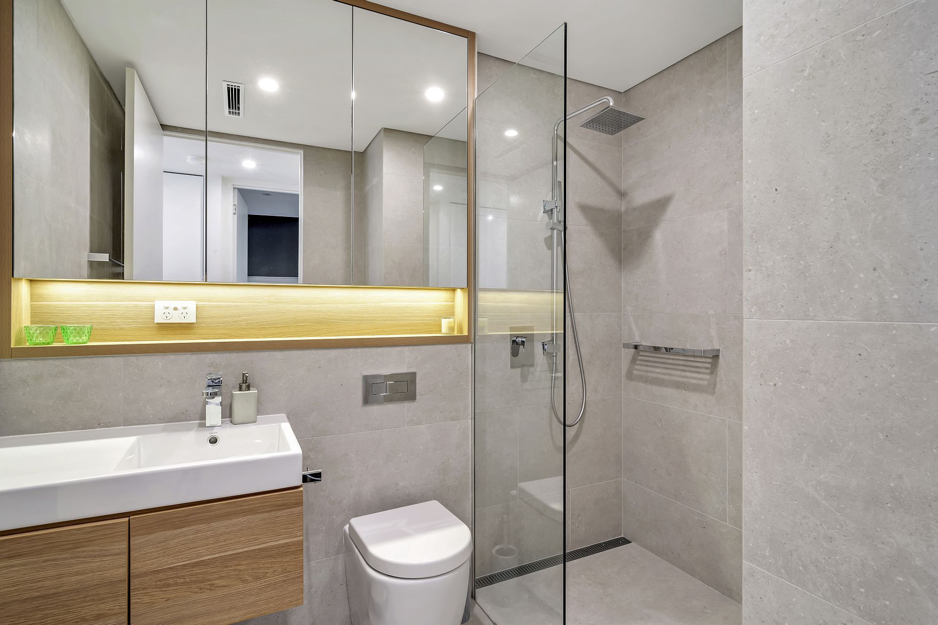 – Modern bathrooms, floor to ceiling tiles, large shower recess