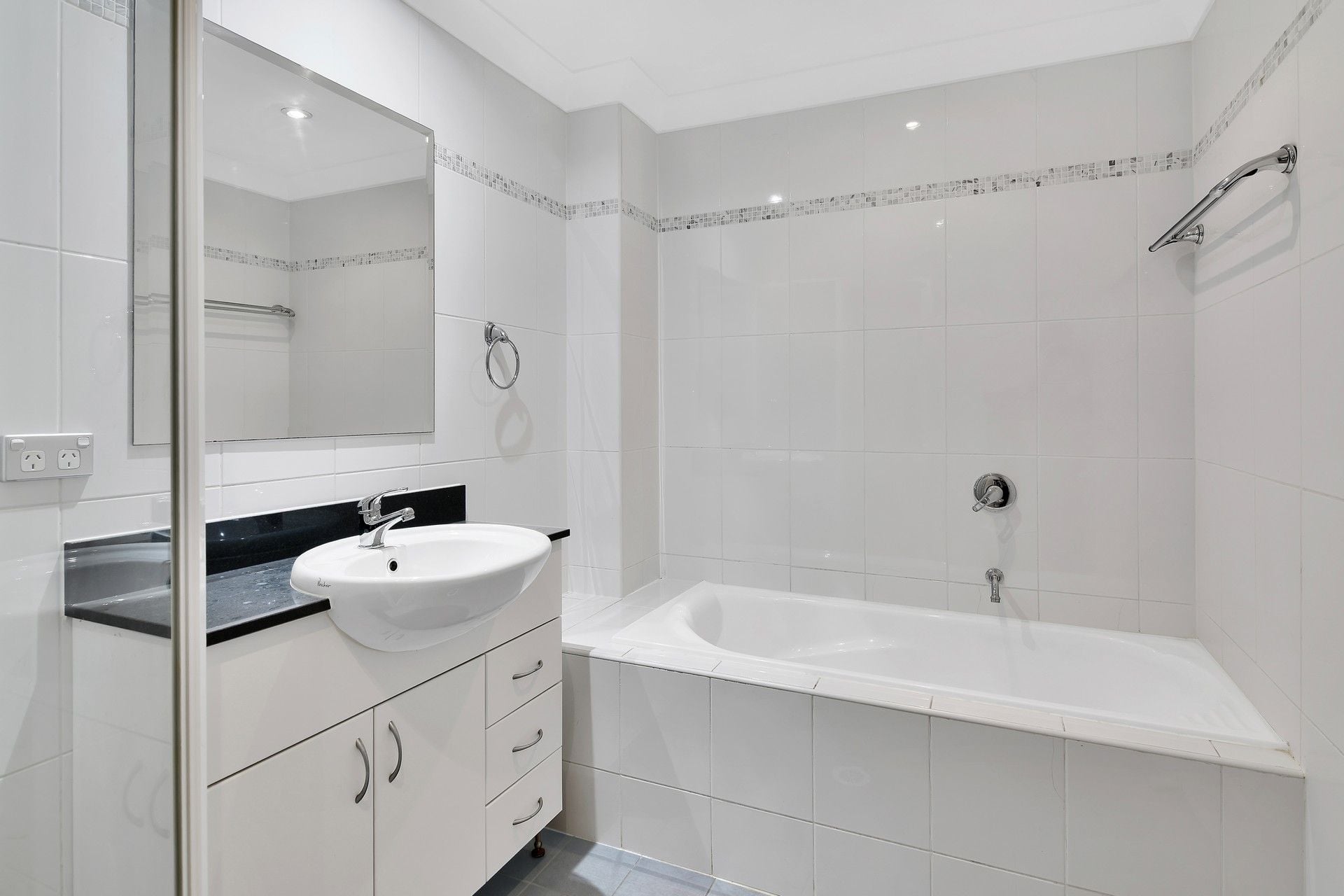 - Main bathroom with separate bath and shower