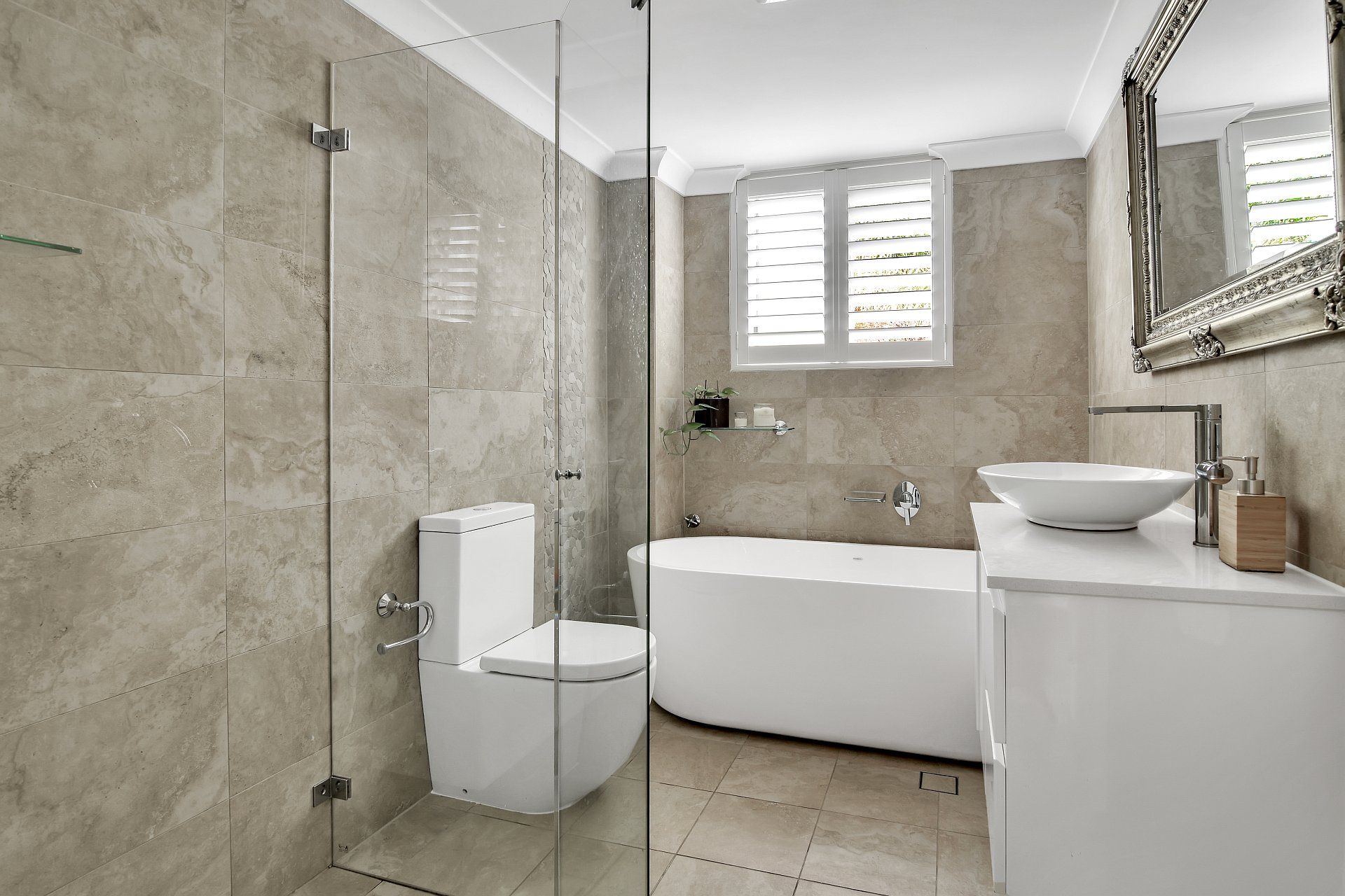 - Luxurious bathroom, separate bath and shower