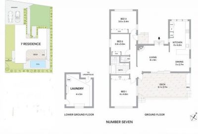– Open plan living connects to a deck, sparkling pool and garden