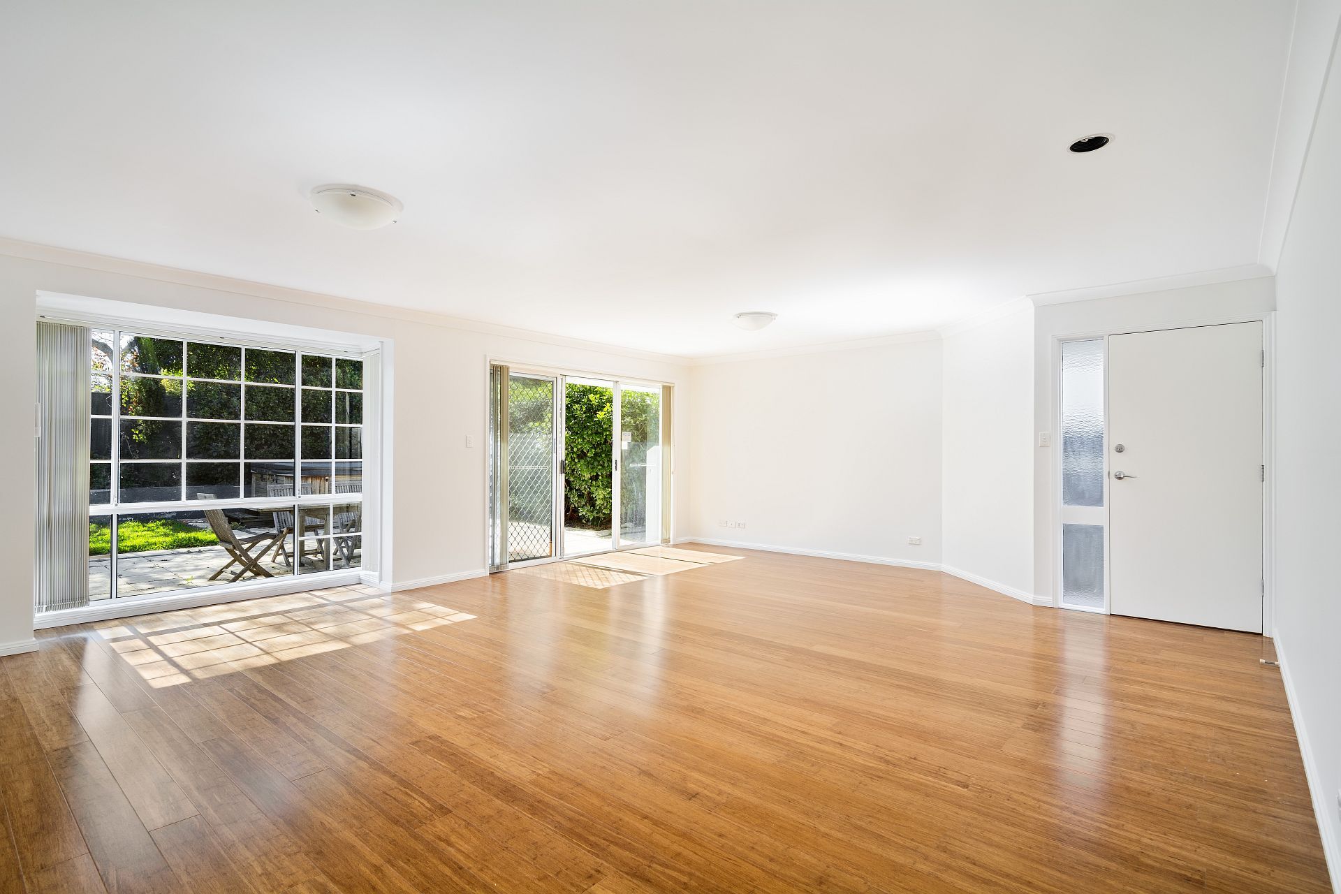 - Light filled living area, bamboo flooring, carpet in bedrooms