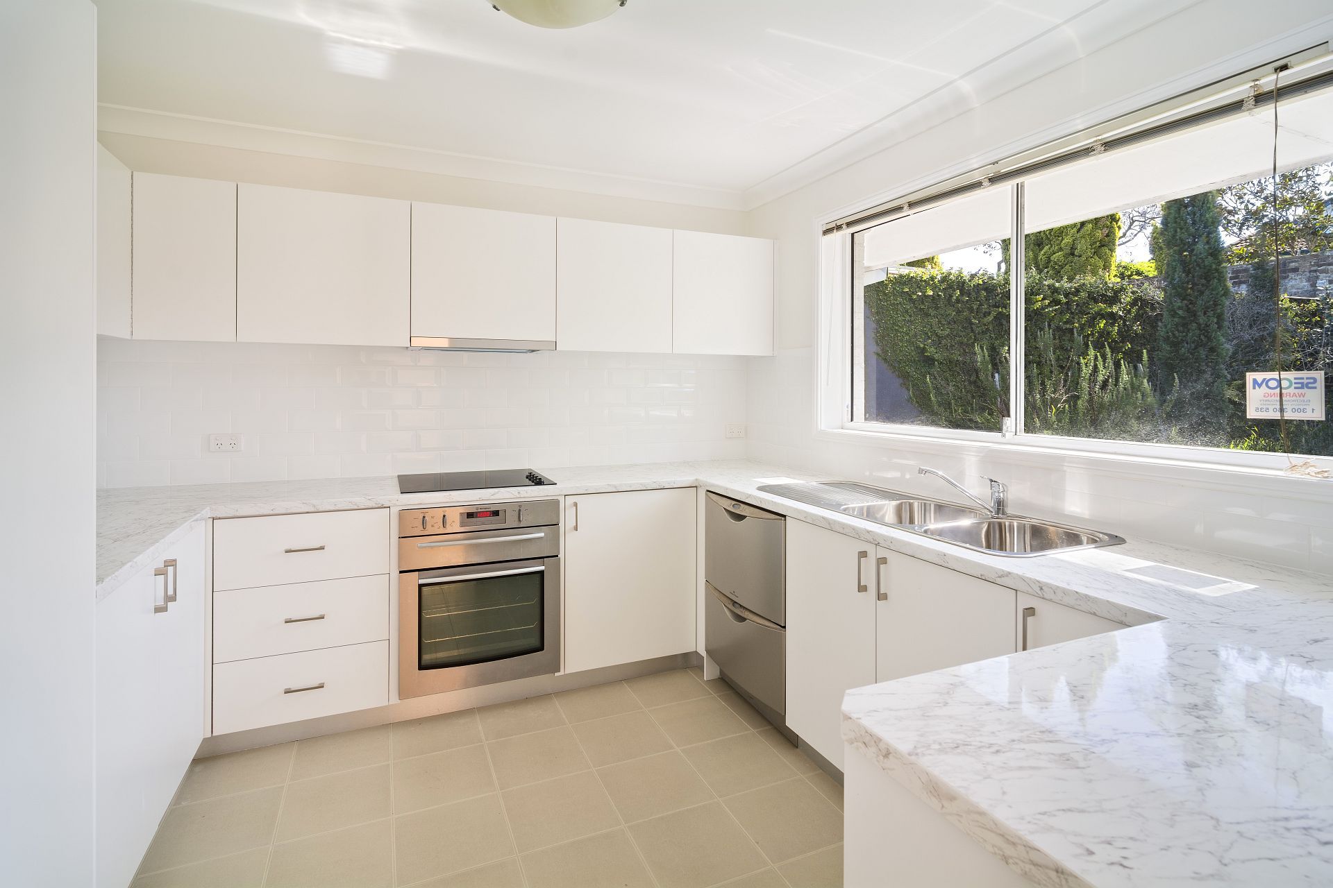 - Modern kitchen with stainless steel appliances, dual dish drawer