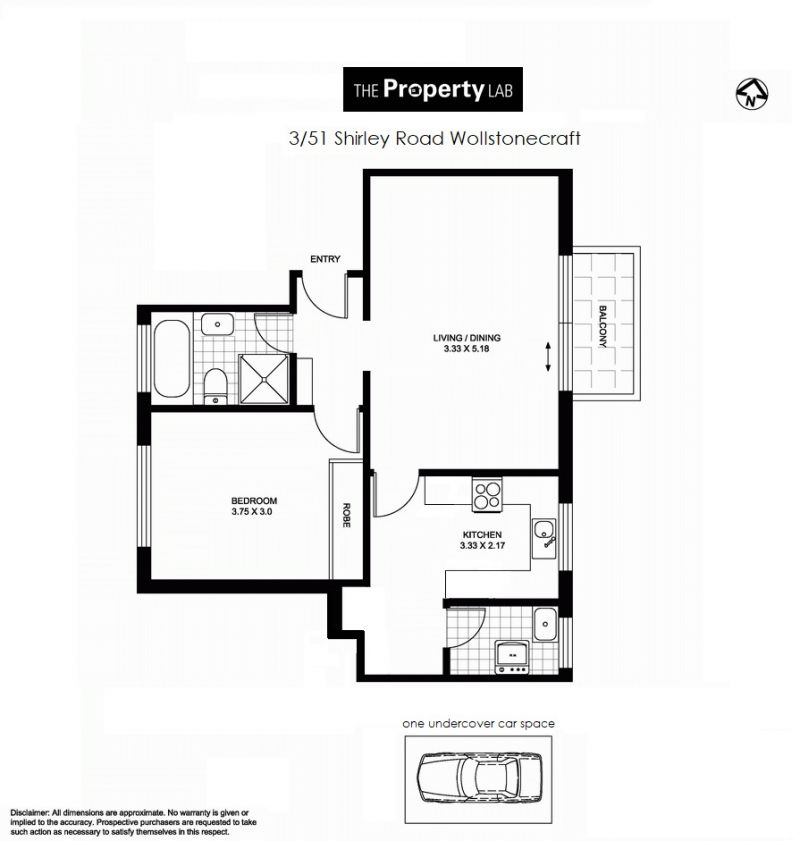 One undercover car space, additional lock-up storage